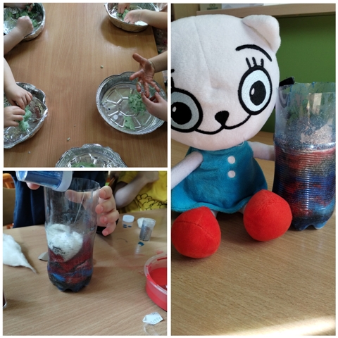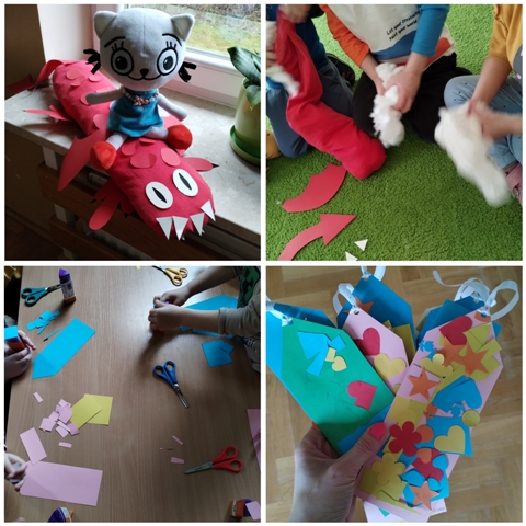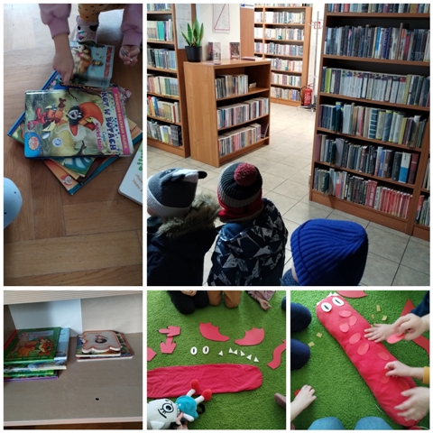 Dzięki różnorodnym zadaniom i ćwiczeniom dzieci rozwijały motorykę małą, zdobywały doświadczenia sensoryczne, rozwijały umiejętność segregowania, przeliczania, rozwijały kreatywność, poszerzały wiedzę na temat układu słonecznego, otaczającego ich środowiska społeczno-przyrodniczego oraz tego jak należy zachowywać się w bibliotece i dlaczego dbanie o książki jest ważne 🙂 Kicia Kocia była nieodłącznym towarzyszem naszych zajęć - zaprzyjaźniła się również z nowym, bajkowym kolegą 😁